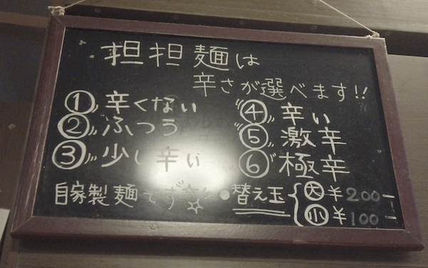 自家製麺の担担麺は辛さが選べます。私は②のふつうにしましたが、もう少し辛くても食べれるかな?と感じました。