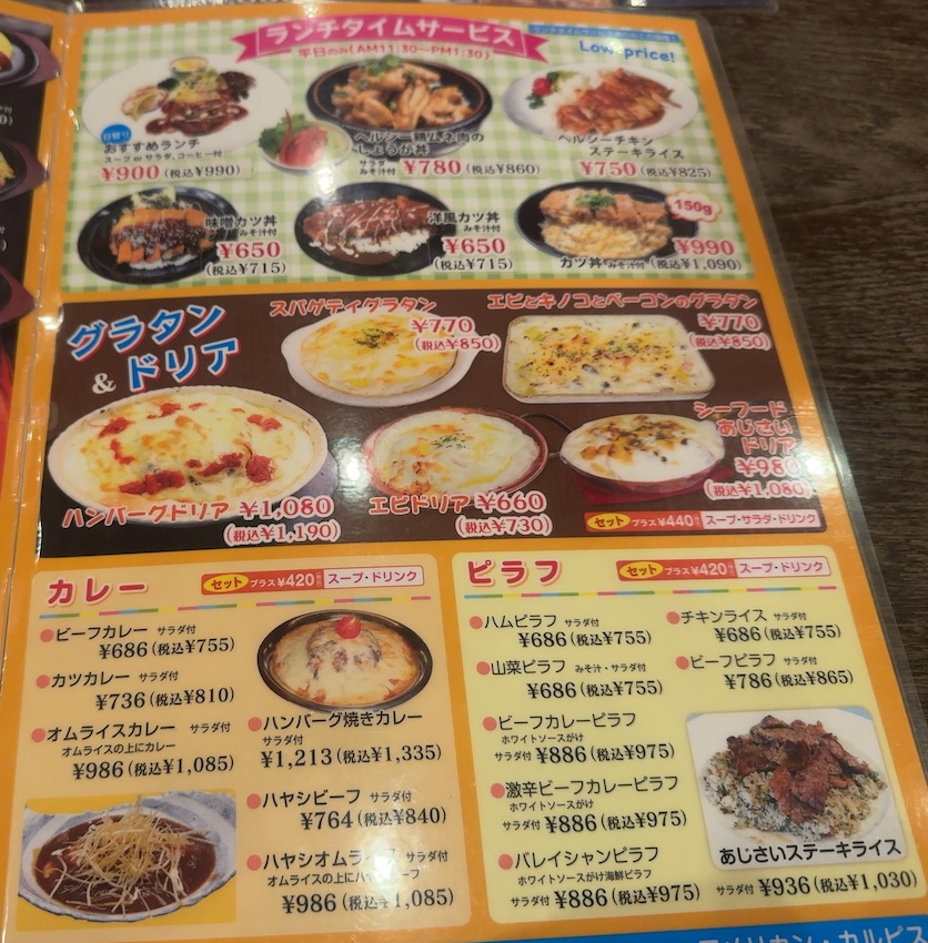 グラタン、ドリア、カレー、ピラフとジャンルもさまざま。