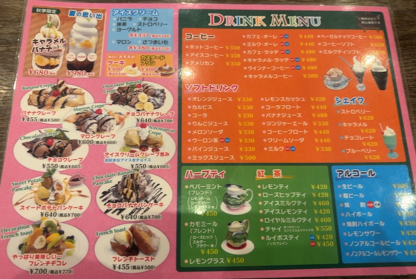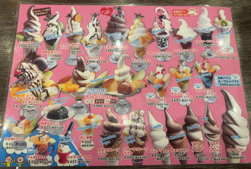 デザートも充実していて、ファミレスならではのパフェやかき氷もありました。
