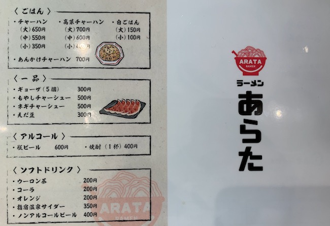 ラーメンあらたのメニュー