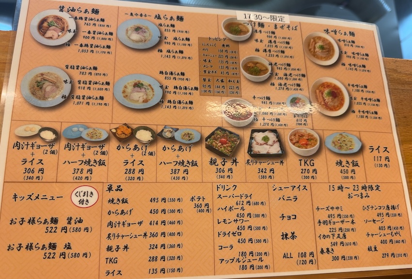 醤油らぁ麺、塩らぁ麺、つけ麺・まぜそば、味噌らぁ麺などなどなんでもありますね。