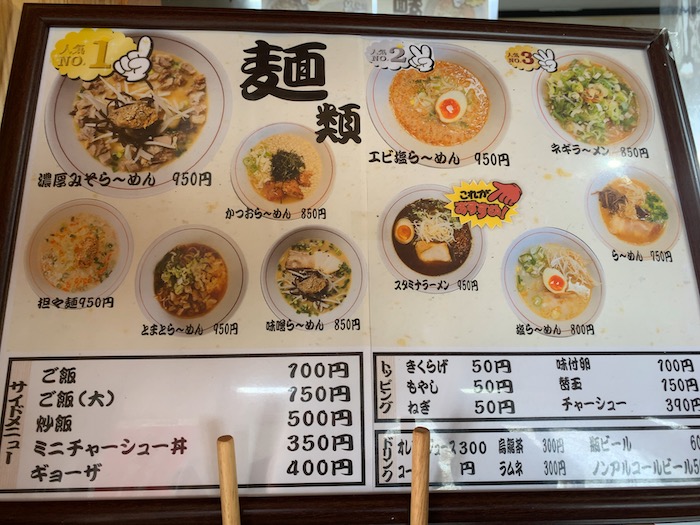 その他かつおらーめんやトマトらーめん、エビ塩らーめんなどなど個性的なラーメンも揃います。