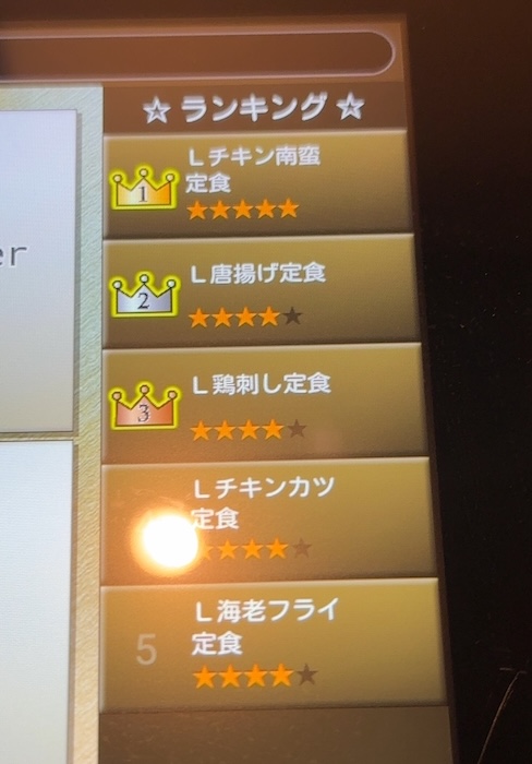 人気ランキングの1位は「Lチキン南蛮定食」。