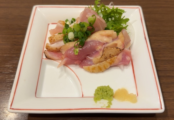 引き締まった身ですがとっても柔らかく、噛めば噛むほど甘味も感じる美味しい鶏刺しでした。