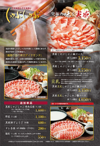 黒豚と言えばしゃぶしゃぶ。黒豚の館のしゃぶしゃぶも人気です。