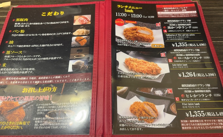 ランチメニューはお得に美味しい黒豚とんかつが食べれるみたいです。