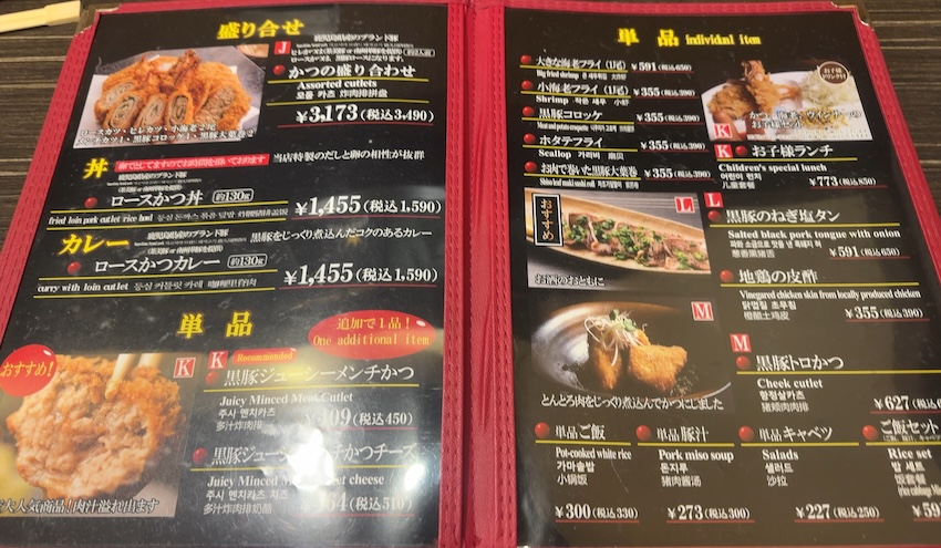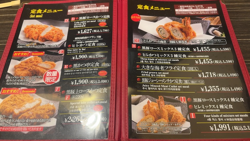 かつ丼やかつカレー、黒豚のねぎ塩タンなどなど。美味しそうなお料理が並びます。