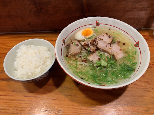 今回は塩チャーシューめん(900円)とごはん小(110円)を注文。
