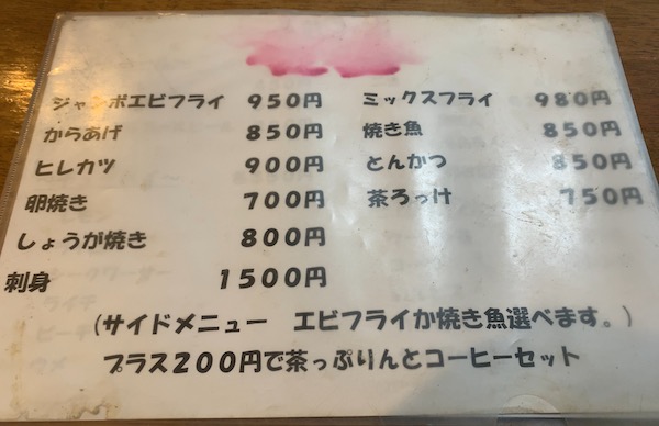 ガッツリ食べたかったので”ミックスフライ”にしました。