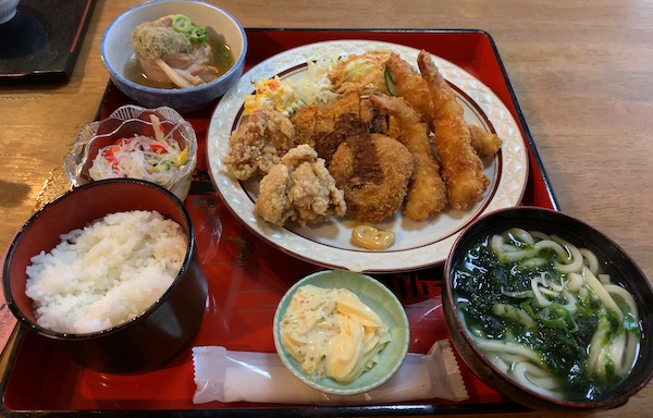 ミックスフライはとってもボリューミーで小鉢まで美味しい定食でした。
