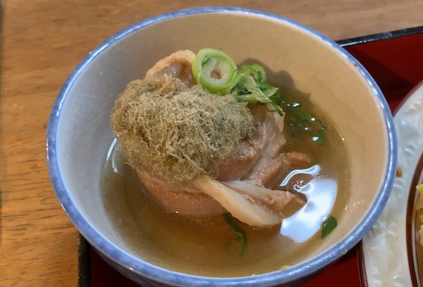 こちらの小鉢は”大根をお肉で巻いたおでん風の煮物”らしいです。これがめちゃめちゃ美味しかった。