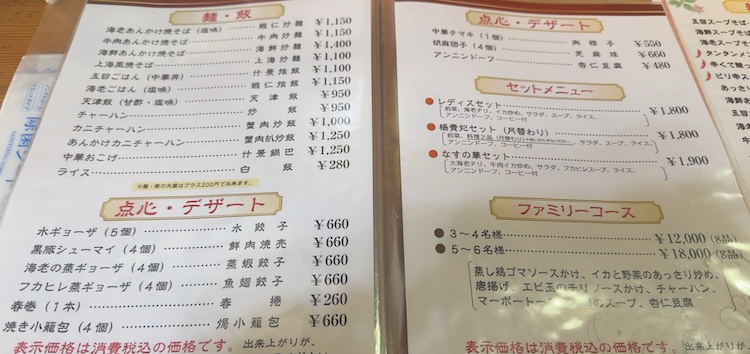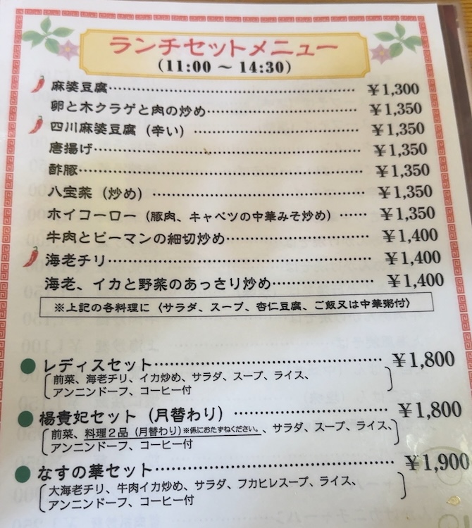 なすの華のメニュー