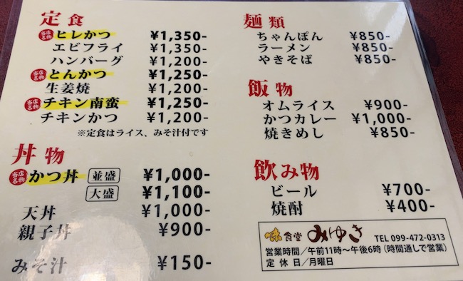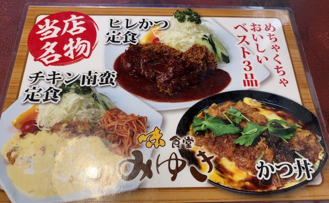 味のみゆきの名物グルメはチキン南蛮定食、ヒレかつ定食、かつ丼の3つ。