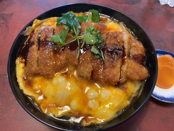かつ丼はソースかつ丼になっていて甘みが食欲をそそります。