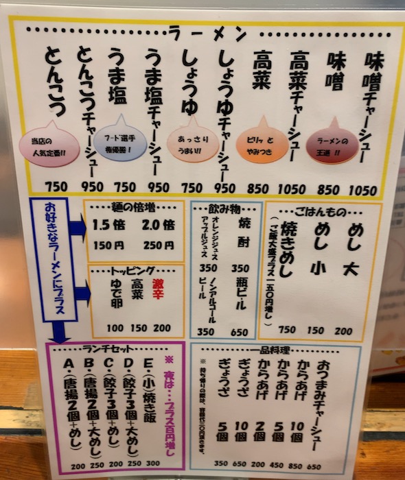 ラーメンの種類が豊富で、今回食べたうま塩ラーメンは自信を持っておすすめできます。