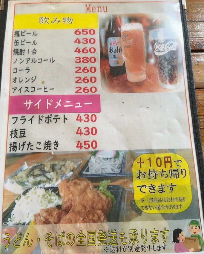ドリンクメニューとサイドメニュー。