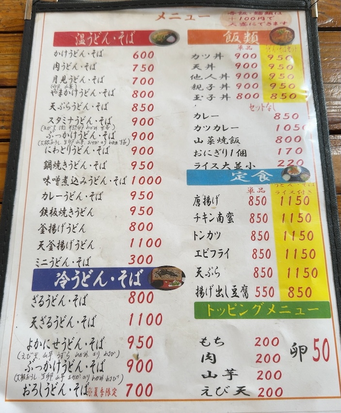 太郎庵のメニューはうどん・そば、丼、定食メニューと王道メニューが一通り揃っています。