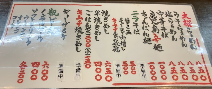 らーめん太桜さんのメニューはラーメン各種と焼きめし、ギョーザなど。