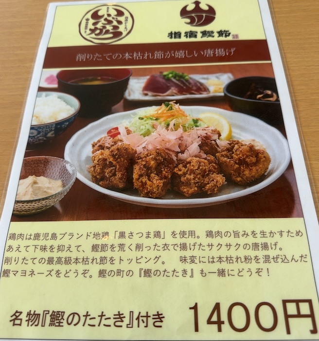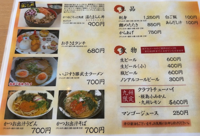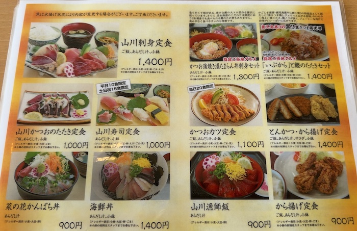 山川はかつおの街ということでかつおメニューが充実。その他の海鮮メニューも美味しそうです。
